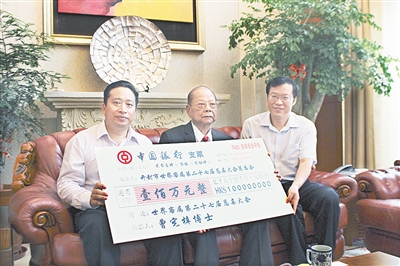 5月24日,曾憲梓博士捐贈(zèng)100萬(wàn)元港幣支持開(kāi)封舉辦世界客屬第27屆懇親大會(huì)。