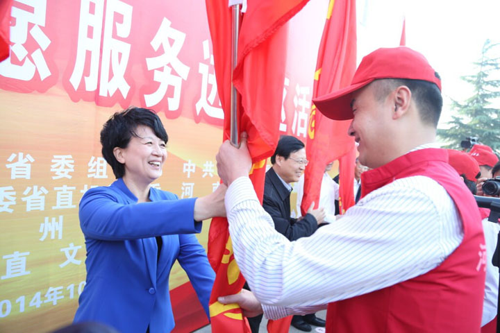 趙部長(zhǎng)向志愿服務(wù)單位授旗