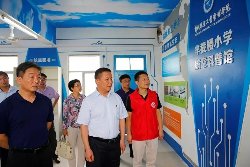 7月11日,河南省委宣傳部常務(wù)副部長(zhǎng)蘇長(zhǎng)青、副部長(zhǎng)張曼如、省文明辦專職副主任王飛等同志帶領(lǐng)部機(jī)關(guān)有關(guān)人員,與鄭州航空管理學(xué)院有關(guān)領(lǐng)導(dǎo)和志愿者師生一行,分別到省委宣傳部幫扶貧困村周口市西華縣半截樓村和漯河市舞陽(yáng)縣余莊村,為省文明辦、鄭州航院援建的航空科普館和鄭州航院志愿服務(wù)基地舉行揭牌儀式。