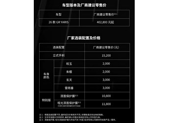 2026款豐田GR YARIS上市,售價(jià)40.28萬(wàn)元