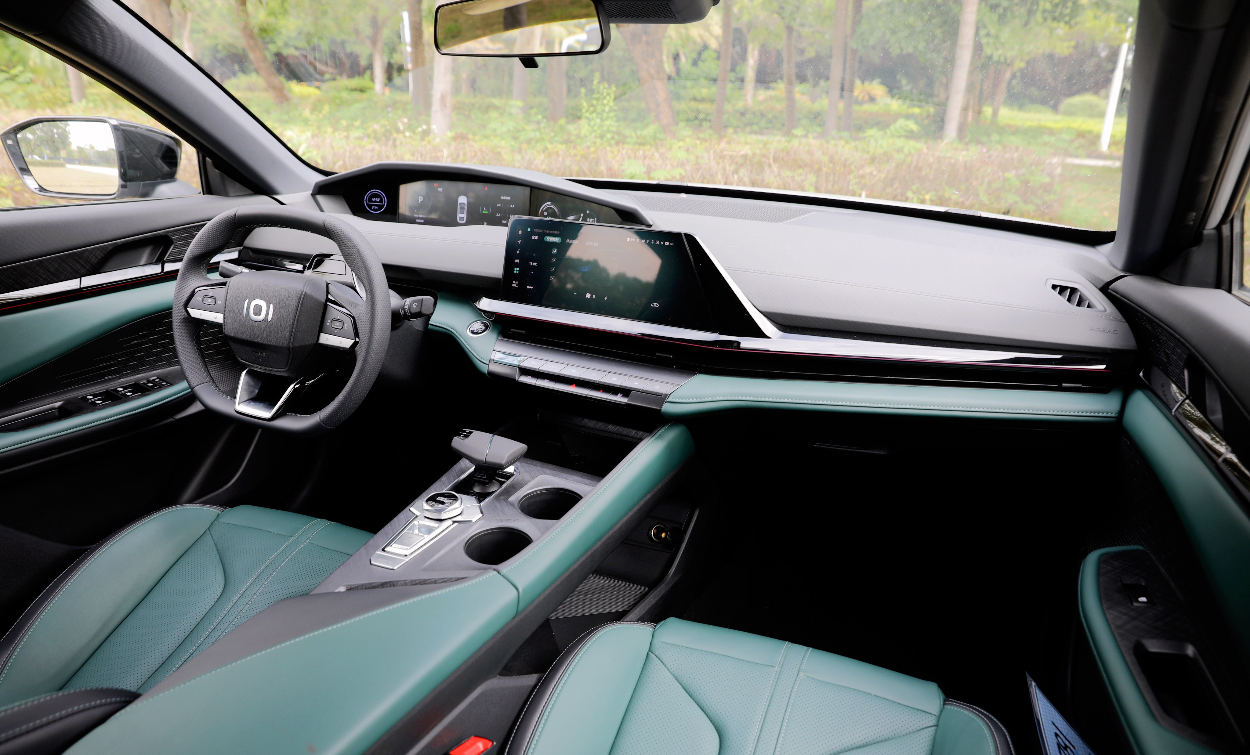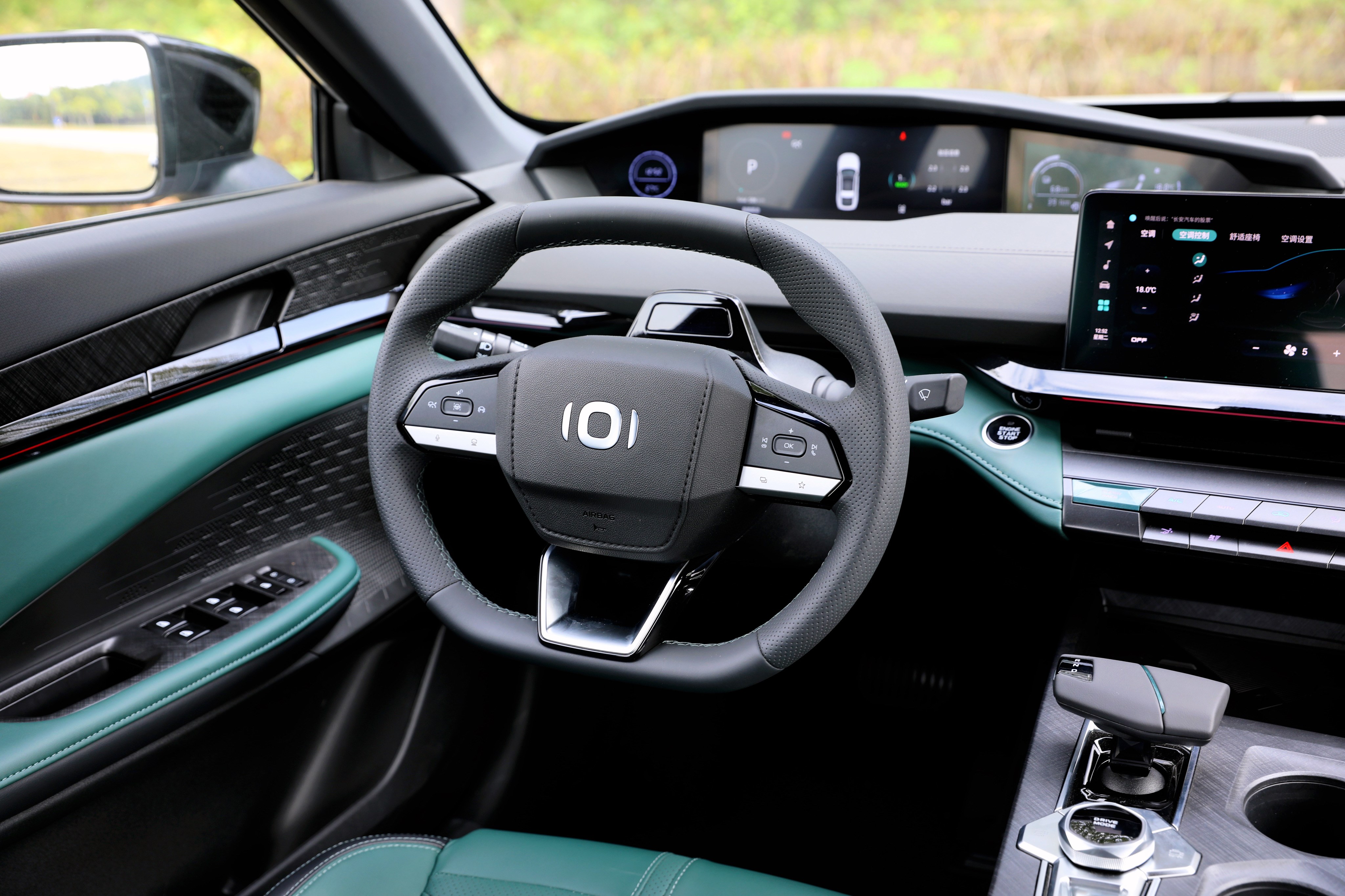 進入車內(nèi),長安啟源A06座艙風(fēng)格很獨特,富有層次感的造型讓你第一眼會感覺很復(fù)雜,但是仔細(xì)品味一番后,它特殊的風(fēng)格可以說是別有一番風(fēng)味。啟源A06提供流沙白和林蹤綠兩種面料配色,個人更喜歡林蹤綠的配色方案,更能體現(xiàn)出動感、時尚的一面。