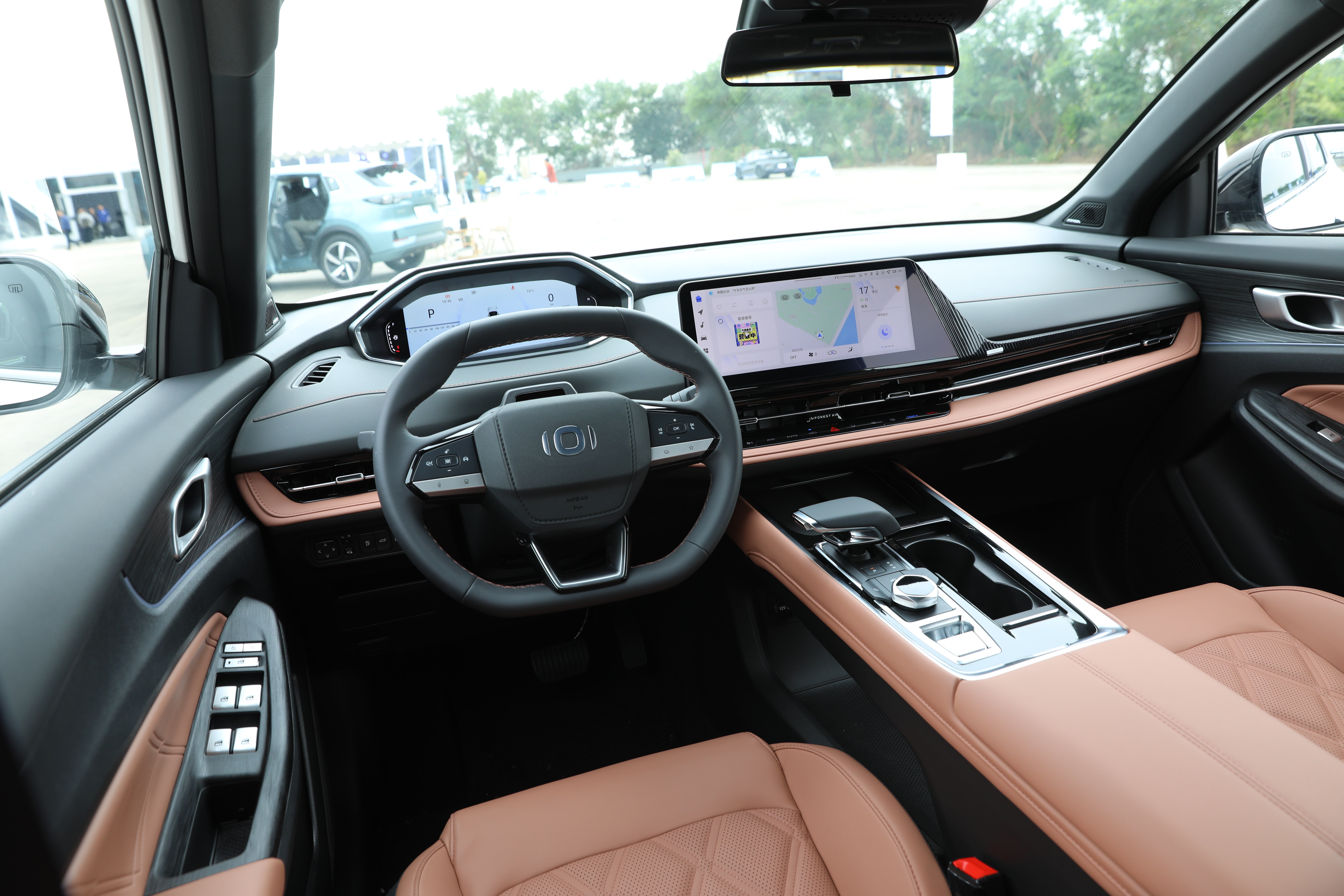 車內(nèi)的風格也沒有那么激進,但家族設(shè)計元素還是一應(yīng)俱全,10.25英寸液晶儀表與12.3英寸懸浮中控屏為車內(nèi)提供科技感,中控區(qū)域依然選擇不規(guī)則的設(shè)計布局,智能化配置上,新車搭載智能語音助手以及豐富的應(yīng)用生態(tài)。