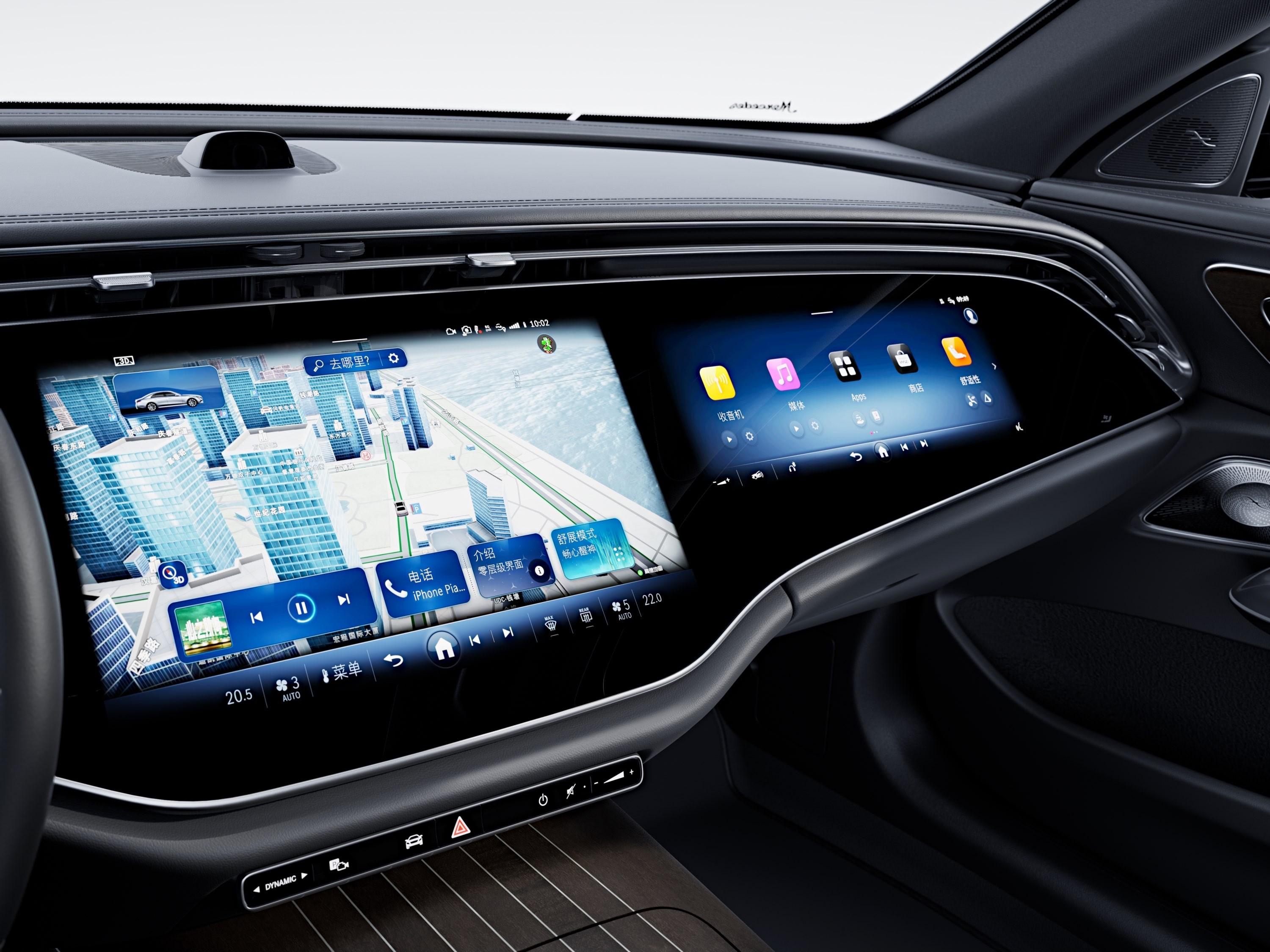 進(jìn)入全新奔馳E級車內(nèi),可以說豪華+科技風(fēng)相碰撞,整體氛圍非常吸睛,而車內(nèi)最耀眼的部分自然是全新大尺寸MBUX超級屏,這塊屏幕首發(fā)搭載了第三代MBUX智能人機(jī)交互系統(tǒng),同時(shí)也是豪華品牌中首款搭載高通8295芯片的車型,從而實(shí)現(xiàn)更多第三方車載應(yīng)用的搭載,例如抖音、玩游戲等等。此外,全新奔馳E級新增自拍攝像頭,支持人臉識別以及場景模式,便于用戶通過Zoom、Webex等拍攝照片或參加視頻會議(支持5G網(wǎng)絡(luò))