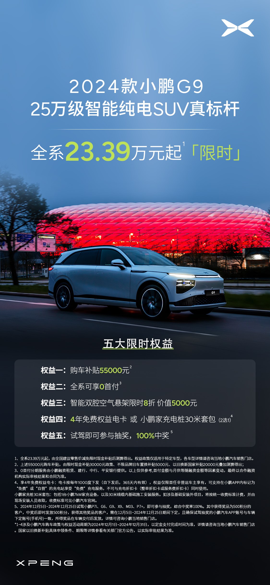 不僅如此,小鵬G9現(xiàn)已開啟“雙十二”史上最大鉅惠政策,至高可享6萬元補貼,全系23.39萬起售的價格,非常適合年底想要“抄底”入的小伙伴們。那么究竟小鵬G9買哪款配置更合適呢?咱們今天分析一波!