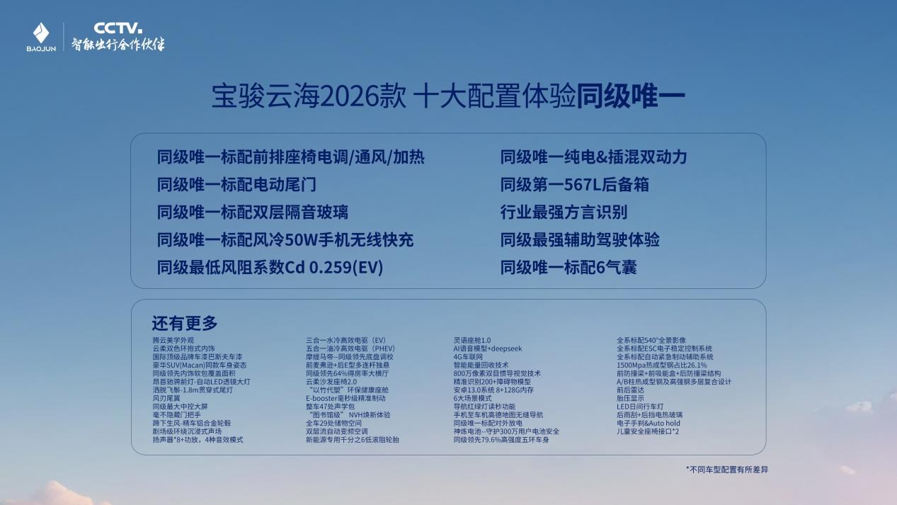 9月13日,“龔赴云海 與JUN同行——寶駿云海私享會(huì)”圓滿落幕。此次,寶駿汽車攜手全球品牌代言人龔俊,共同解讀寶駿云海2026款及俊雅版的產(chǎn)品硬實(shí)力。同時(shí),正式公布了分階段推進(jìn)的OTA升級(jí)計(jì)劃,10月31日前將為旗下五款車型陸續(xù)推送最新靈語(yǔ)座艙體驗(yàn),并將在今年年底行業(yè)首發(fā)10萬(wàn)級(jí)城市領(lǐng)航輔助功能,讓老車主也能擁有“常用常新”的智能體驗(yàn)。