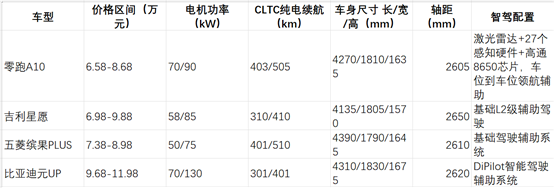 現(xiàn)在 10 萬級純電 SUV 市場的主力選手就是比亞迪元 UP 和吉利星愿,我把三臺車主核心參數(shù)給大家列出來,一目了然:這么對比下來就很清楚了:零跑 A10 比吉利星愿便宜 1 萬多,比比亞迪元 UP 便宜 3 萬多,但是配置反而更高,尤其是智能化配置,直接比對手高了一個量級,性價比確實是獨一檔的存在。就像媒體說的那樣:"10 萬級的價格,敢對標(biāo) 20 萬級的智能化配置",真不是吹的。