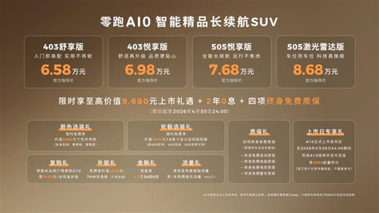 早上 7 點半的北三環(huán)高架又堵成了停車場,隔壁網(wǎng)約車司機啃著包子掃了一眼我開的試駕車,探出頭喊:"兄弟這新出的零跑 A10 吧?我正打算把我那臺老油車換了,聽說不到 9 萬就能帶激光雷達(dá)?" 我笑著揮了揮手 —— 是啊,現(xiàn)在的新能源市場卷到什么程度?6 萬起步,最高不到9萬的小車,能把以前 20 萬級才有的配置給你塞得滿滿當(dāng)當(dāng),零跑 A10 這臺剛上市的小型純電 SUV,顯然就是來掀桌子的。